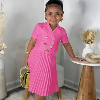 เซ็ตเสื้อผ้าลำลองสำหรับเด็กผู้หญิง2025ชุดแฟชั่นฤดูร้อนสีพื้นกระโปรงจีบสำหรับเด็กผู้หญิงวัยรุ่น2-8Y อินเทรนด์